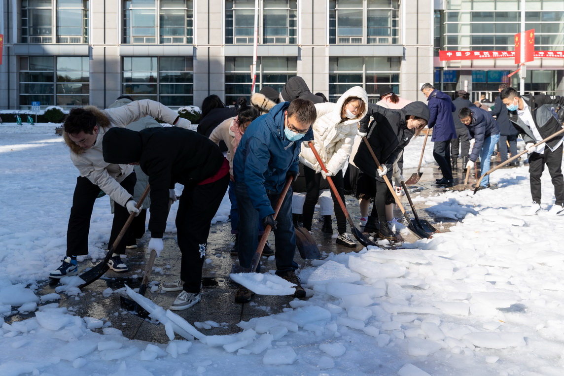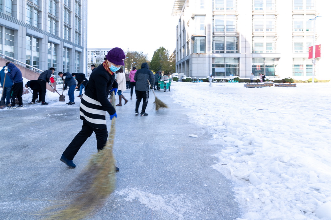 校园除雪进行时 汗水融化暖人心--天职师大师生扫雪除冰保障校园安全